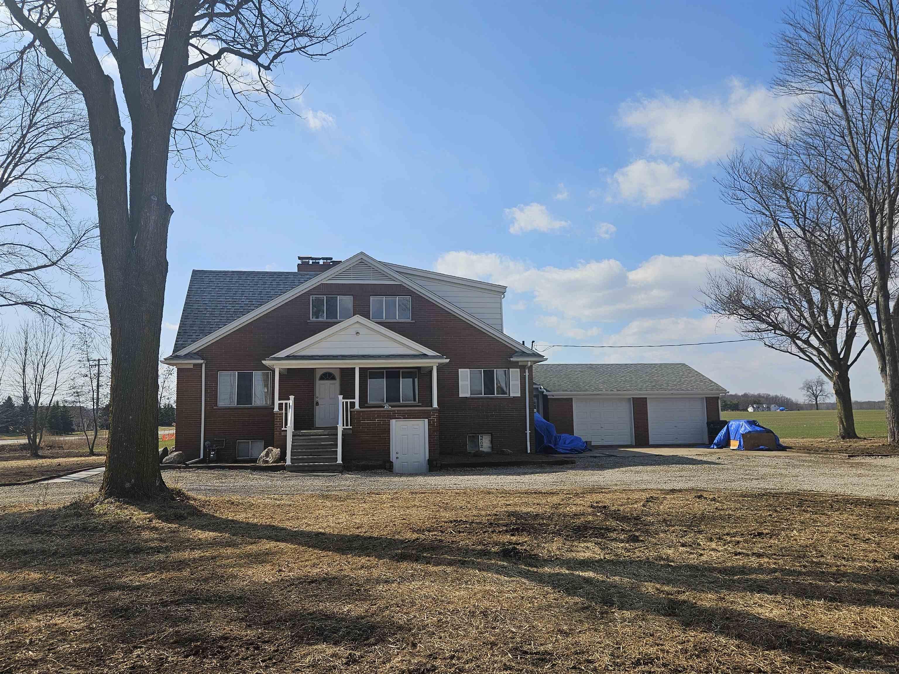 4.2 Acres!!!! Split Possible!! 440 ft road frontage, paved road, natural gas, city water. 3500+ SQ FT, hard wood and laminate thru out. 1st floor Primary with bath and laundry. All the bedrooms are HUGE with many featuring built in furniture. Closets, closets, closets! Solid brick home, attached garage. 3 fireplaces, Large basement with private entrance and egress windows. Perfect home for a large extended family. Land Contract possible. Circle Drive for convenience, large trees on property, beautiful rural views. Brings your gardening desires and chicken coop.